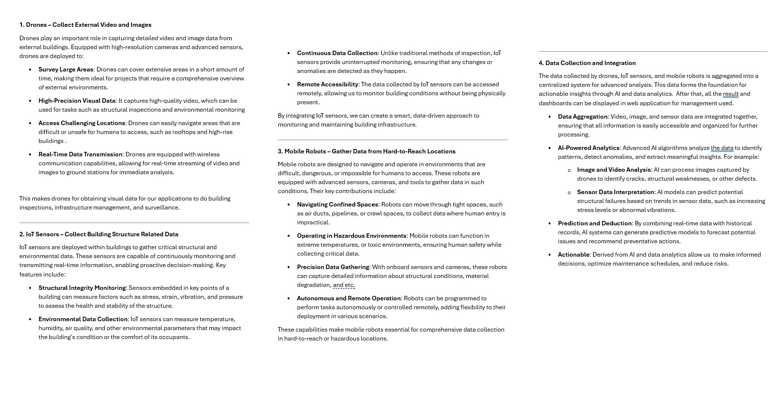 - Mobile robots => Gather data from hard-to-reach locations.