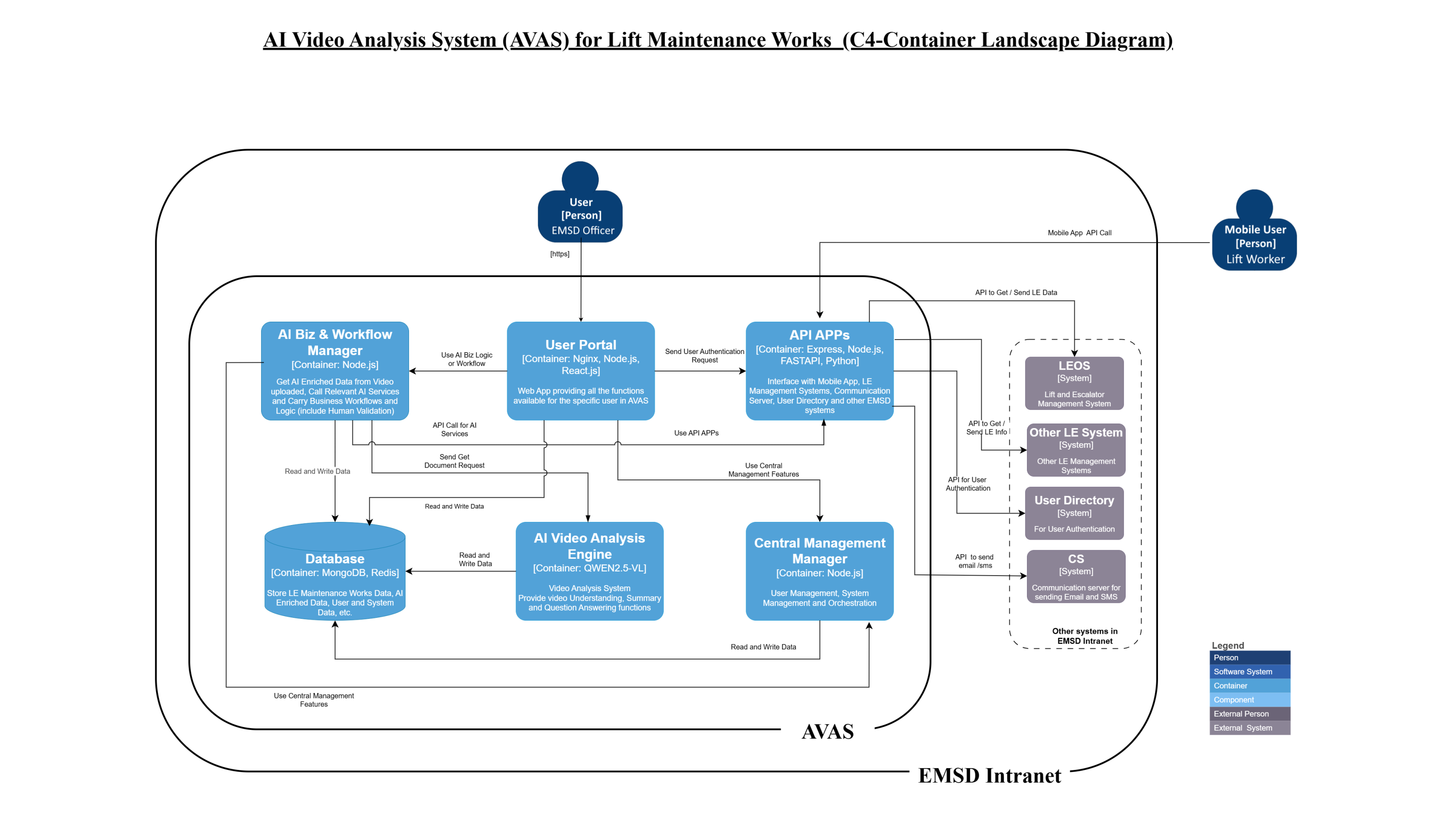- A secure, web-based platform for EMSD inspectors to manage video submissions, view AI-generated analysis reports, and conduct manual reviews.