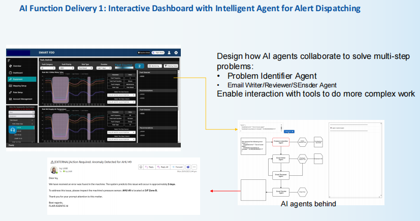 - Utilizes AI-FDD models to analyze real-time IoT sensor data and operational logs for early fault detection and prediction.