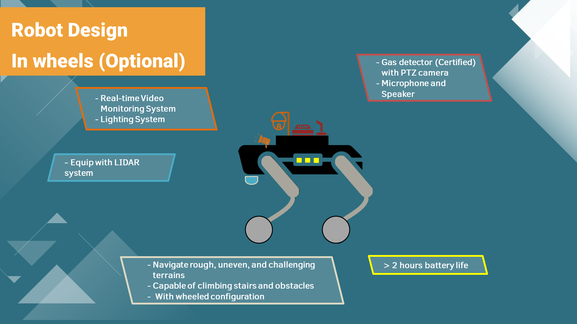 Navigation & Mobility: Capable of navigating complex, uneven terrain and tight spaces within the confined space environment.
