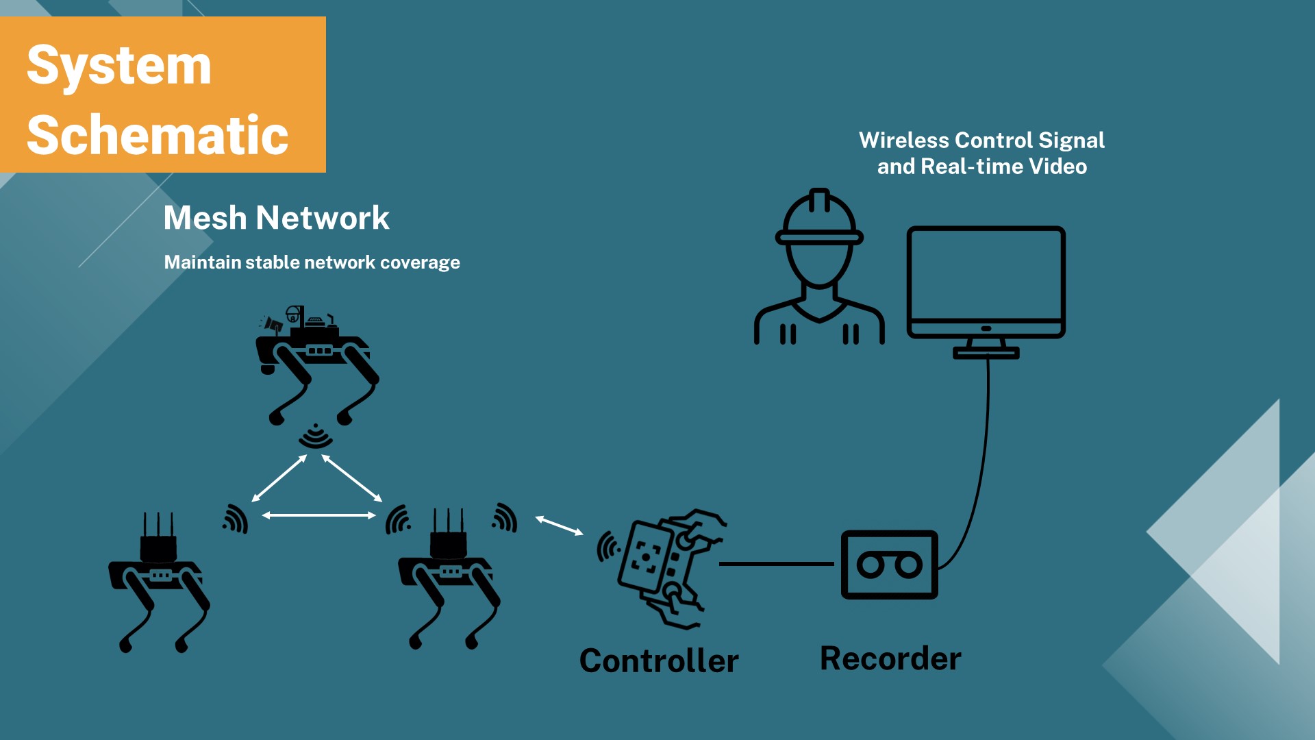 Robust Mesh Network: Maintain stable network coverage and automatic adaptation to quadruped separation/rejoining within the confined space.