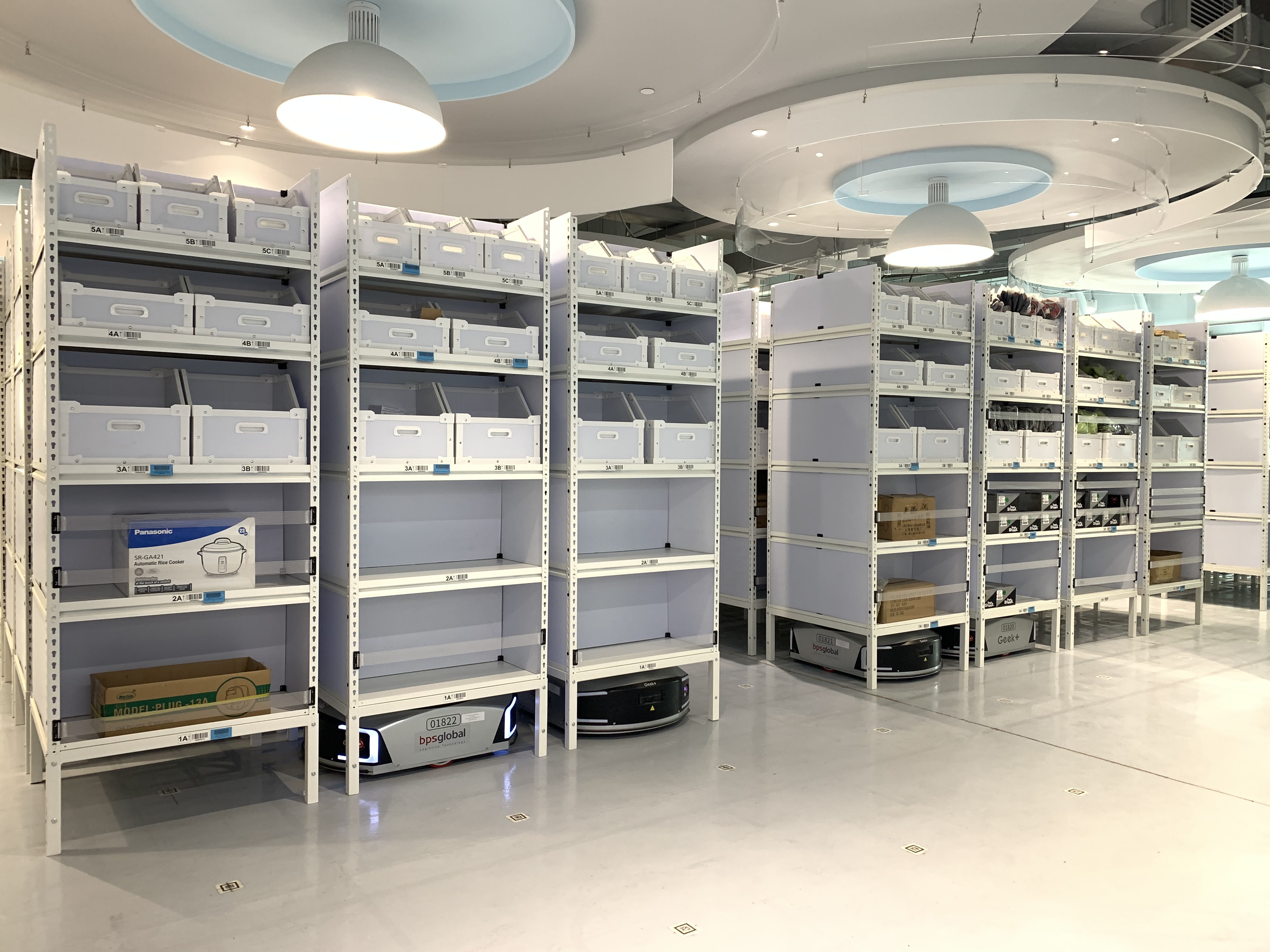 ai Store解決方案是集合自助儲物櫃、機械控制系統和倉庫管理系統於一身的自動導航車(AGV)系統。
