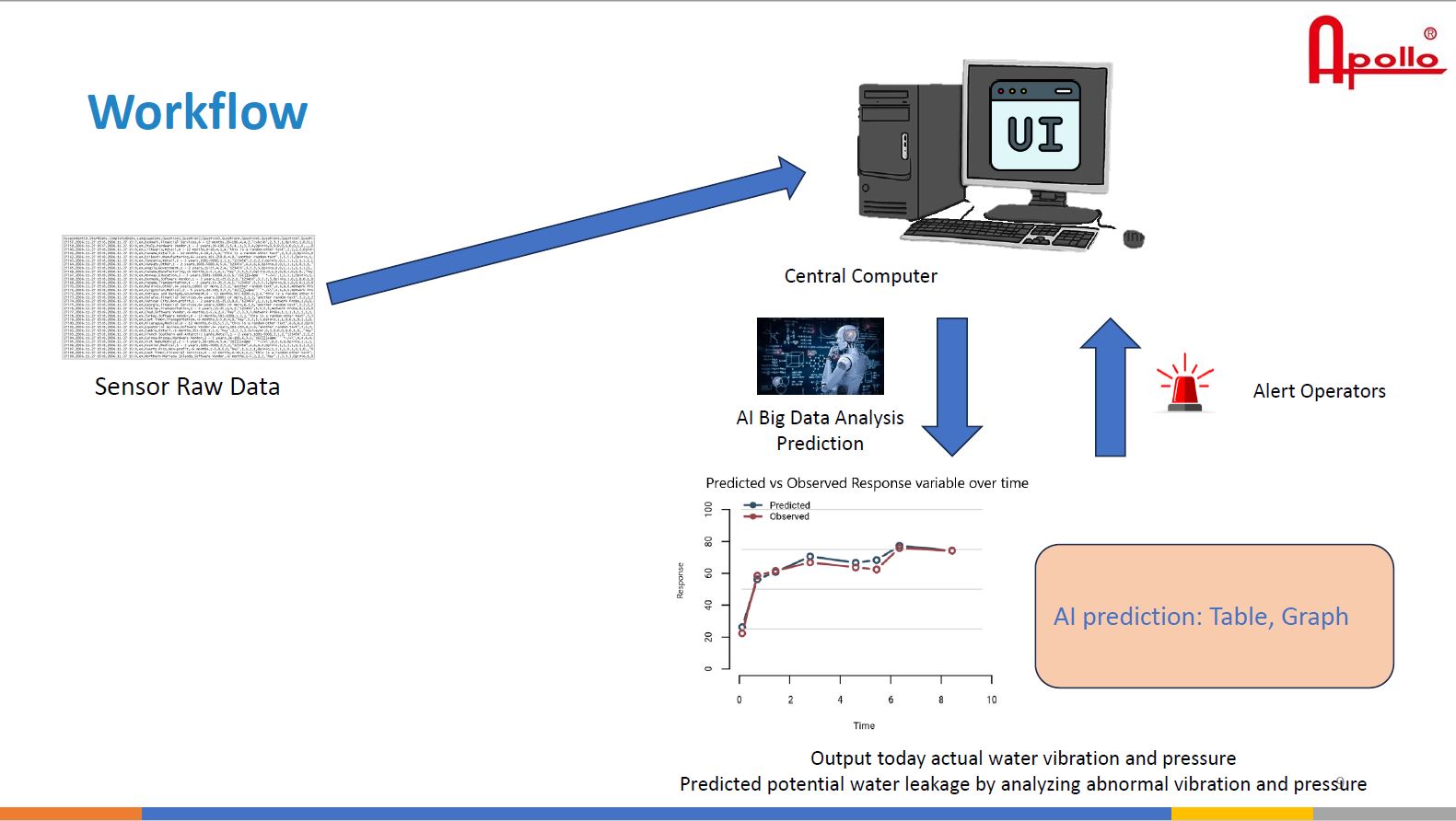 對原始感測器數據進行人工智慧大數據分析,預測潛在漏水情況