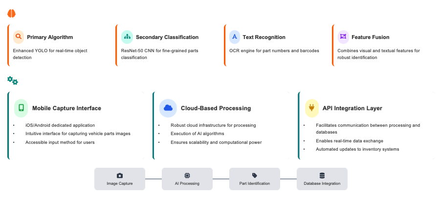 - 核心電腦視覺演算法:此解決方案採用先進的電腦視覺演算法,精準識別和分類車輛零件。