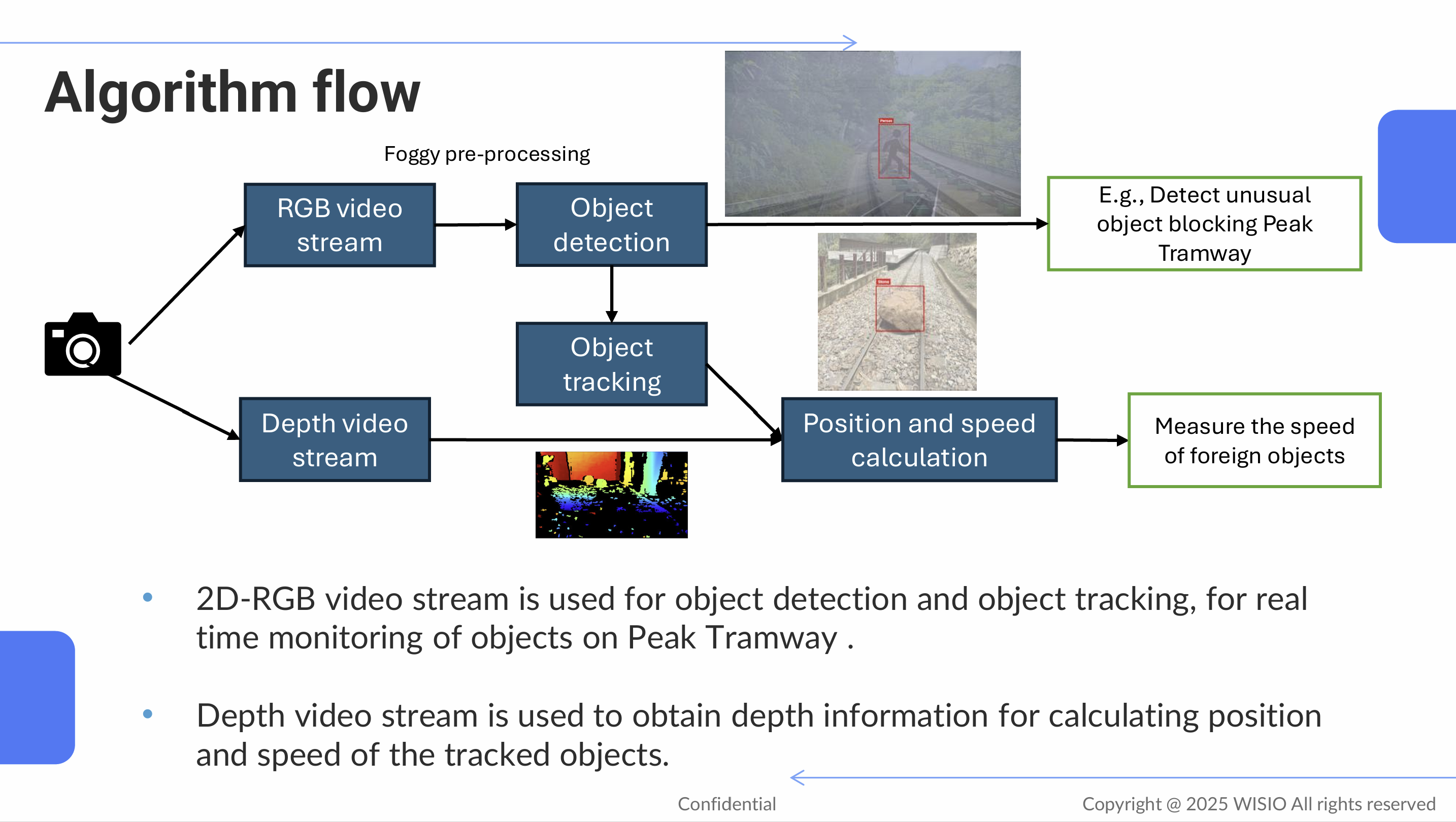 - 採用AI視覺算法,能於低能見度條件下辨識異物,並透過物件追蹤技術計算位置、移動速度與方向