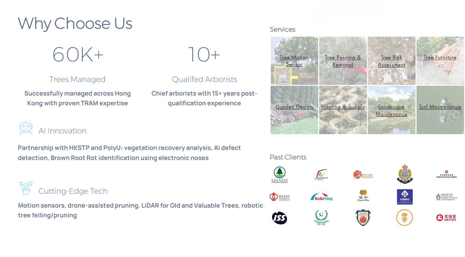 - 運用人工智能模型整合樹木、環境及天氣數據,進行樹木倒塌預測,提升安全。