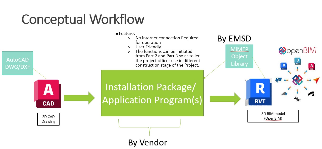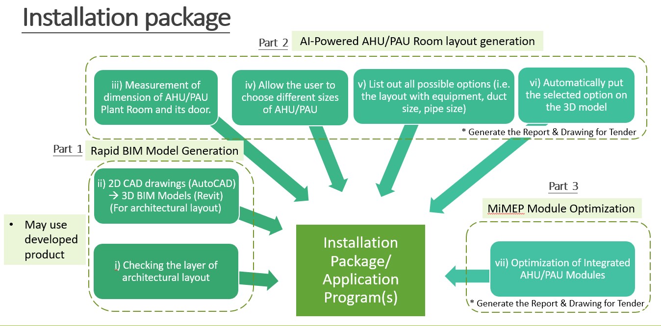 - 本創新科技挑戰項目旨在開發具備下列功能的建築信息模擬外掛安裝包括: